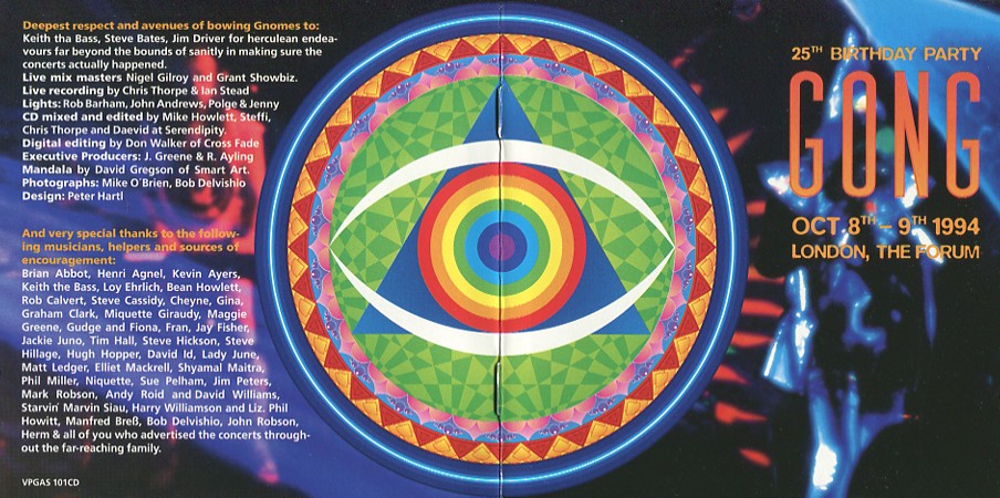 MSI (Japan) MSIF 3338/9Voiceprint (UK) VPGAS 101CD に日本語解説を付けたもの Gong 1994 Daevid Allen Tim Blake Mike Howlett Didler Malherbs Pip Pyle Steffi Sharpstrings Gilli Smyth( & Shyamal Maitra) Recorded Live On Oct 8th And 9th 1994,In London At The Forum |