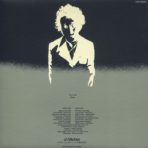 Robin Trower が何曲かそれっぽいギターを弾いているけど、Gary Brooker の曲とは、まとまりがないっていうのかなぁ、これは。 A-1 の途中の全盛期の Sparks みたいなキーボードが◎、これだけで星2つ。 分離は非常に良い。細かい S.E. みたい音もちゃんと拾える。中低音もボリュームがある。ヘッドフォンだと音像がちょっと手前過ぎて息苦しいかな。 さらに高音もクリアに。 | |