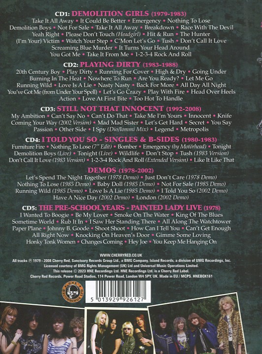 | Disc 1 Demolition Girls (1979-1983) | Disc 2 Playing Dirty(1983-1988) |
